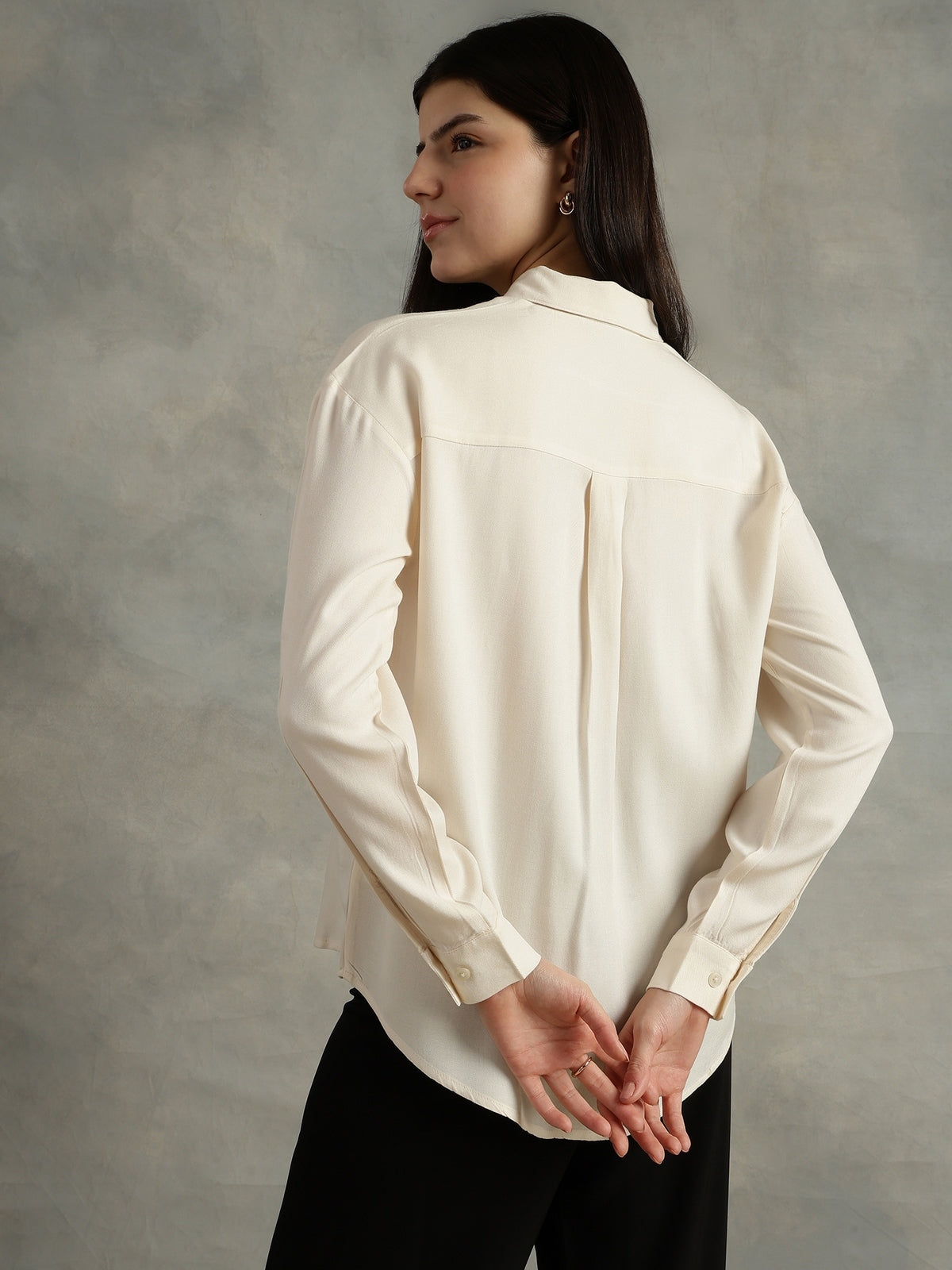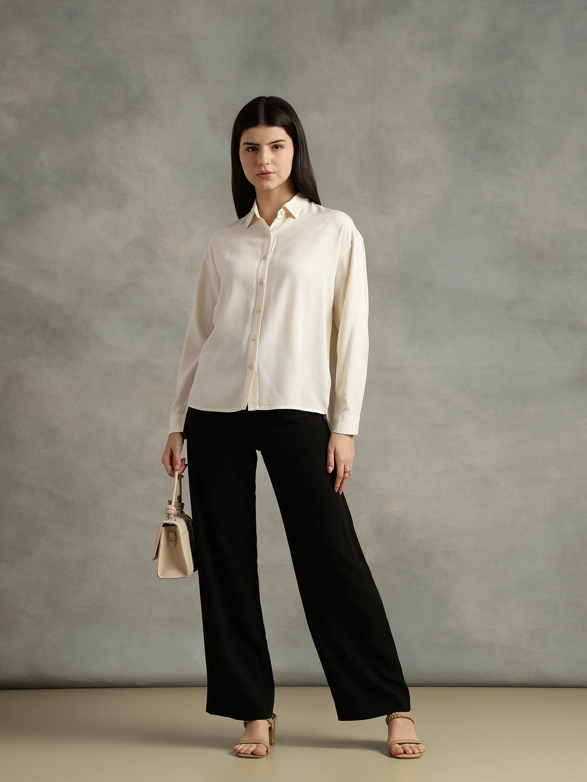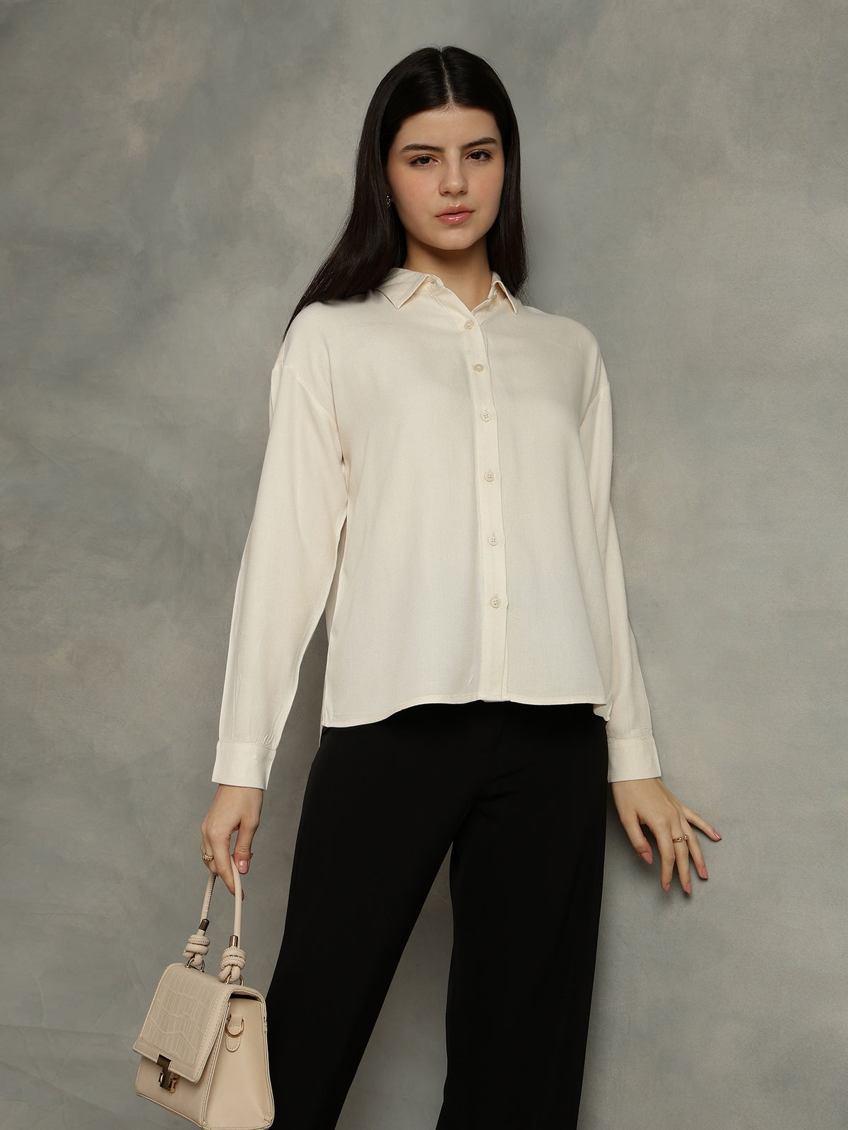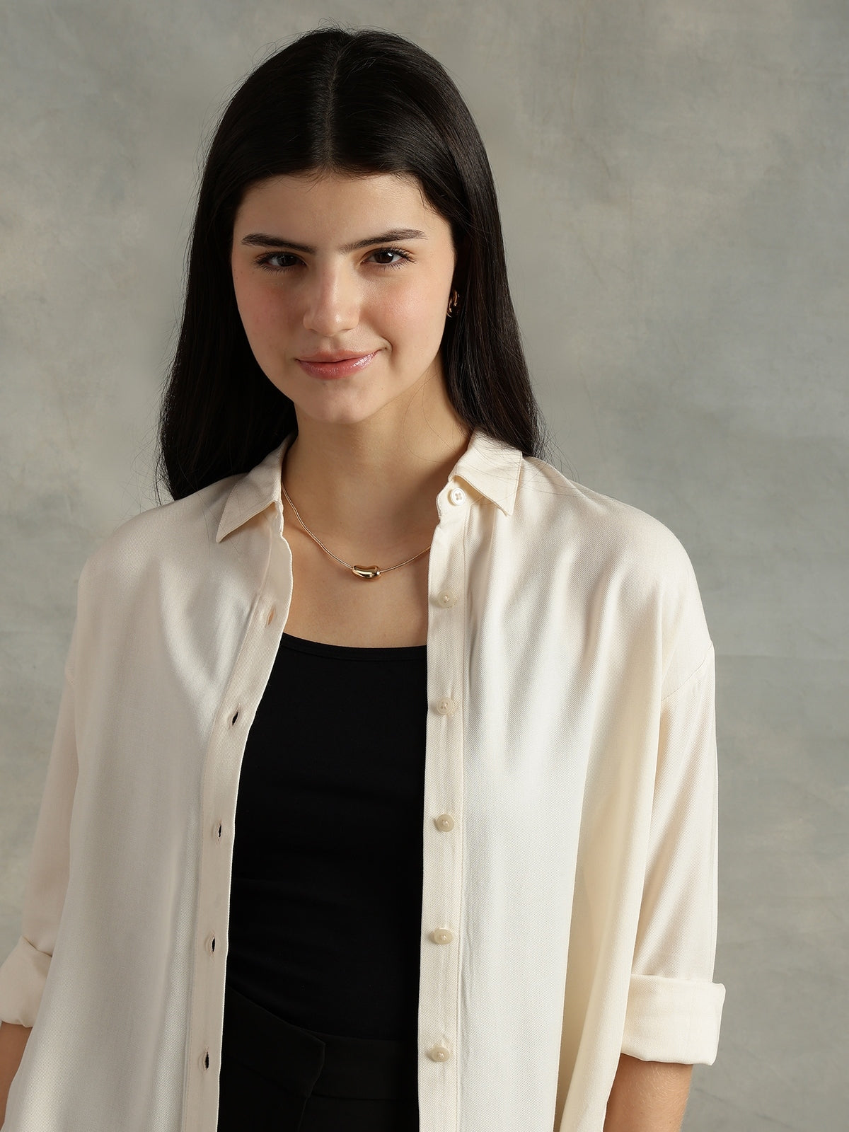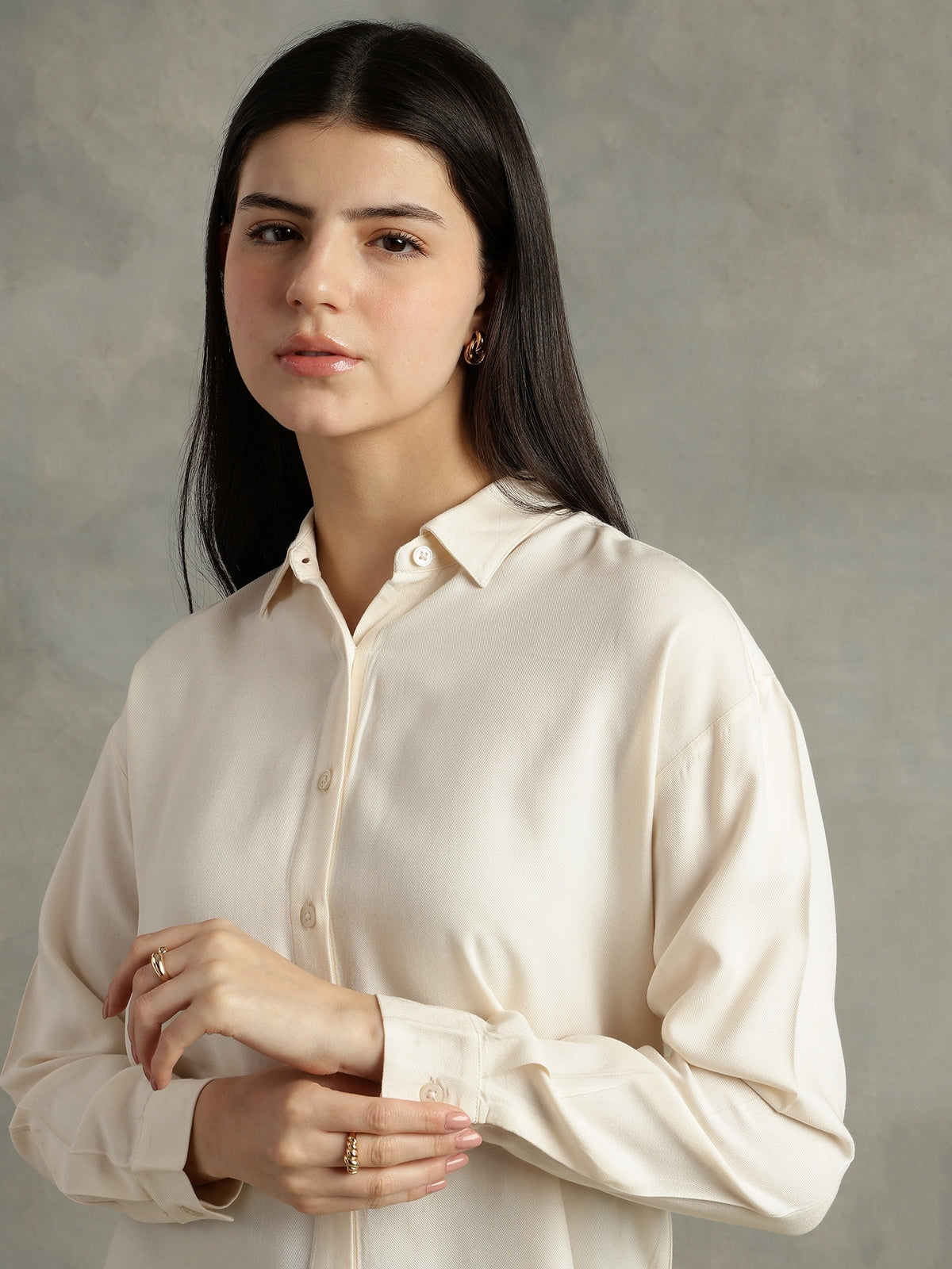 Variants: Crystal Grey Spread Collar Long Sleeves Shirt