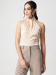 Beige Satin Halter Neck Sleeveless Top
