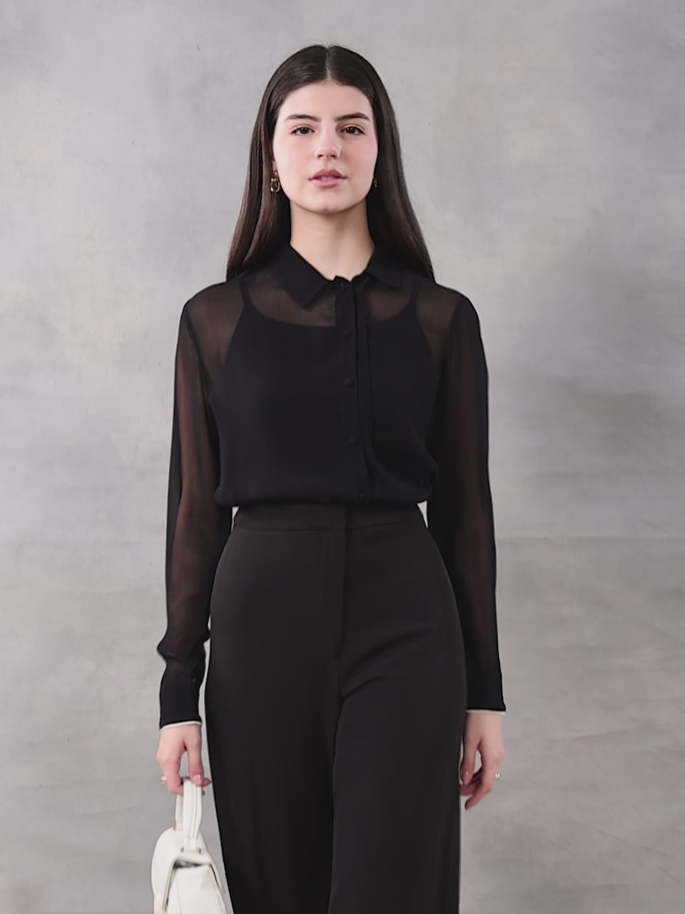 Black Georgette Spread Collar Shirt
