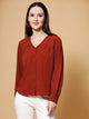 Effortlessly stylish, this Blue Polyester top with a V-neck and long sleeves offers a perfect balance of comfort and elegance. Ideal for all-day wear.
