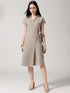 Step into effortless elegance with this brown solid wrap dress from Vintage Khadi. Crafted from breathable viscose rayon, it features a flattering V-neckline, roll-up short sleeves, and a fit-and-flare silhouette that drapes beautifully. Ideal for sunny days and balmy evenings.