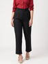 •Product Details: Black trousers feature a flattering mid-waist design with front pleats and side pockets. Made from a soft, structured fabric