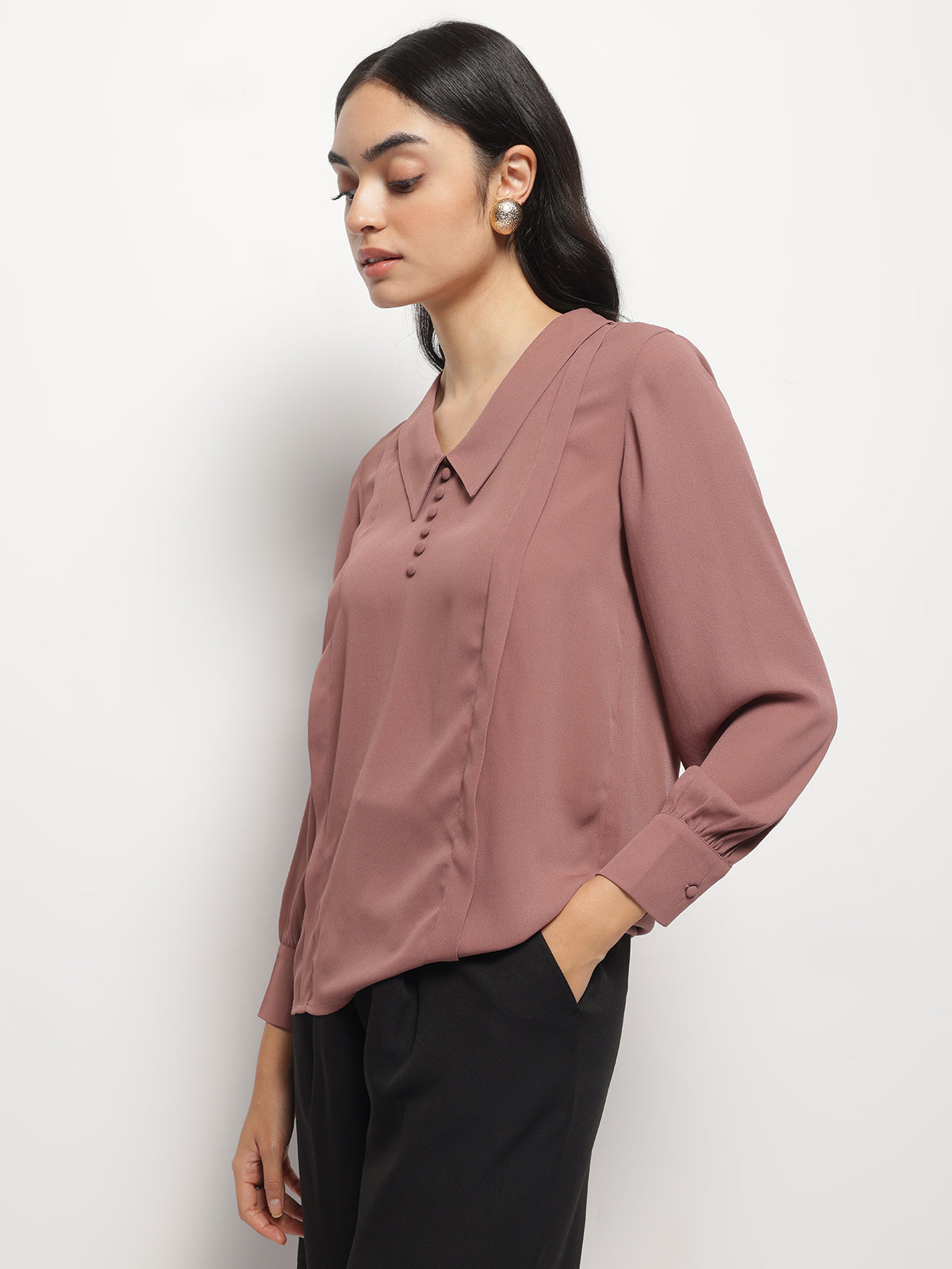 Variants: Grape Shake Long Collar Pintuck Full Sleeves Top