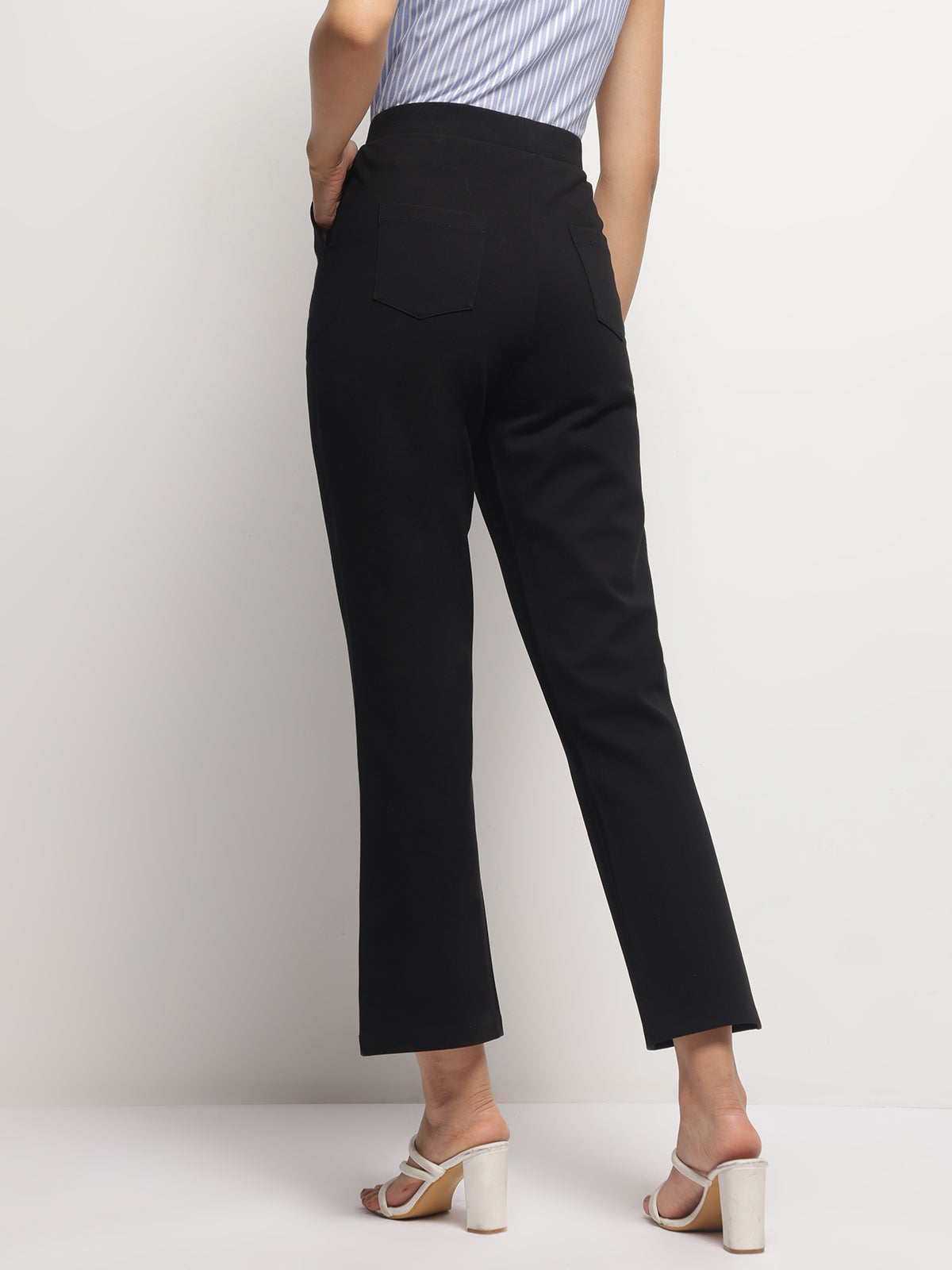 Designed for both comfort and shape, these beige high-waist straight pants offer a flattering silhouette with a soft, stretchable viscose-rayon blend.