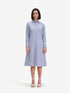•Product Details : A smart striped shirt dress with a crisp collar, full button-down front, and long sleeves. The adjustable tie-back detail shapes the waist for a flattering silhouette while keeping the look polished and office-ready.