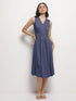Flowing and feminine, this indigo wrap dress features a soft blend of viscose and polyester. The deep V-neckline and self-tie waist create a flattering fit for any body type.