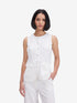 •Product Details : Sleeveless tailored waistcoat-style top in white with fabric-covered buttons, princess seams, and welt pockets.