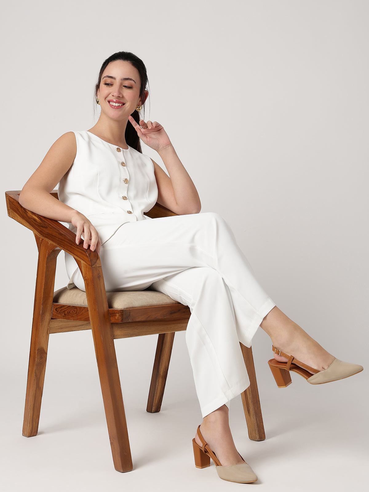 •Style Note: Clean and contemporary, this white waistcoat is a wardrobe staple—layer over crisp shirts for workwear polish or pair with monochrome separates for a modern, minimalist look. Silver or muted accessories will enhance its refined tone.