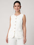 •Product Details: Sleek sleeveless design with gold buttons and pockets. Perfect for layering, offering a polished and versatile look for work or smart casual wear.