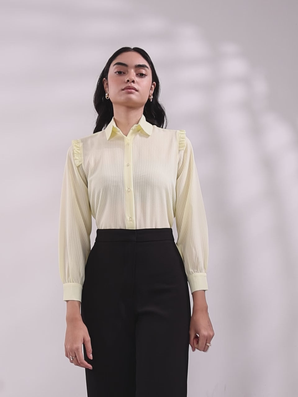 Variants: Yellow Ruffle Shoulder Semi Sheer Shirt