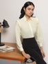 Add a soft feminine touch with this yellow semi-sheer ruffle shoulder shirt. The subtle transparency and flowy fabric make it perfect for sunny days.